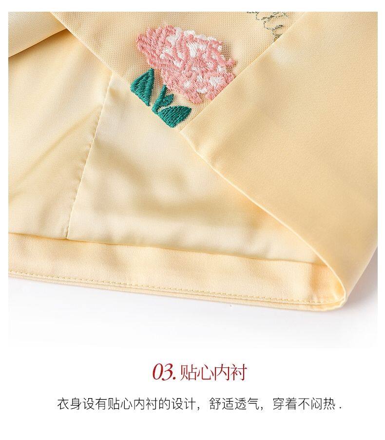 Joso杏粉色高级夏季感中式背心女式夏装原创设计网眼刺绣乡村风板扣上衣